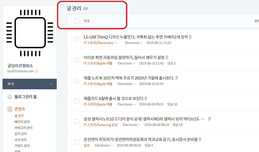 | 티스토리 주제 선정하기 (12) | 2019.09.06 |