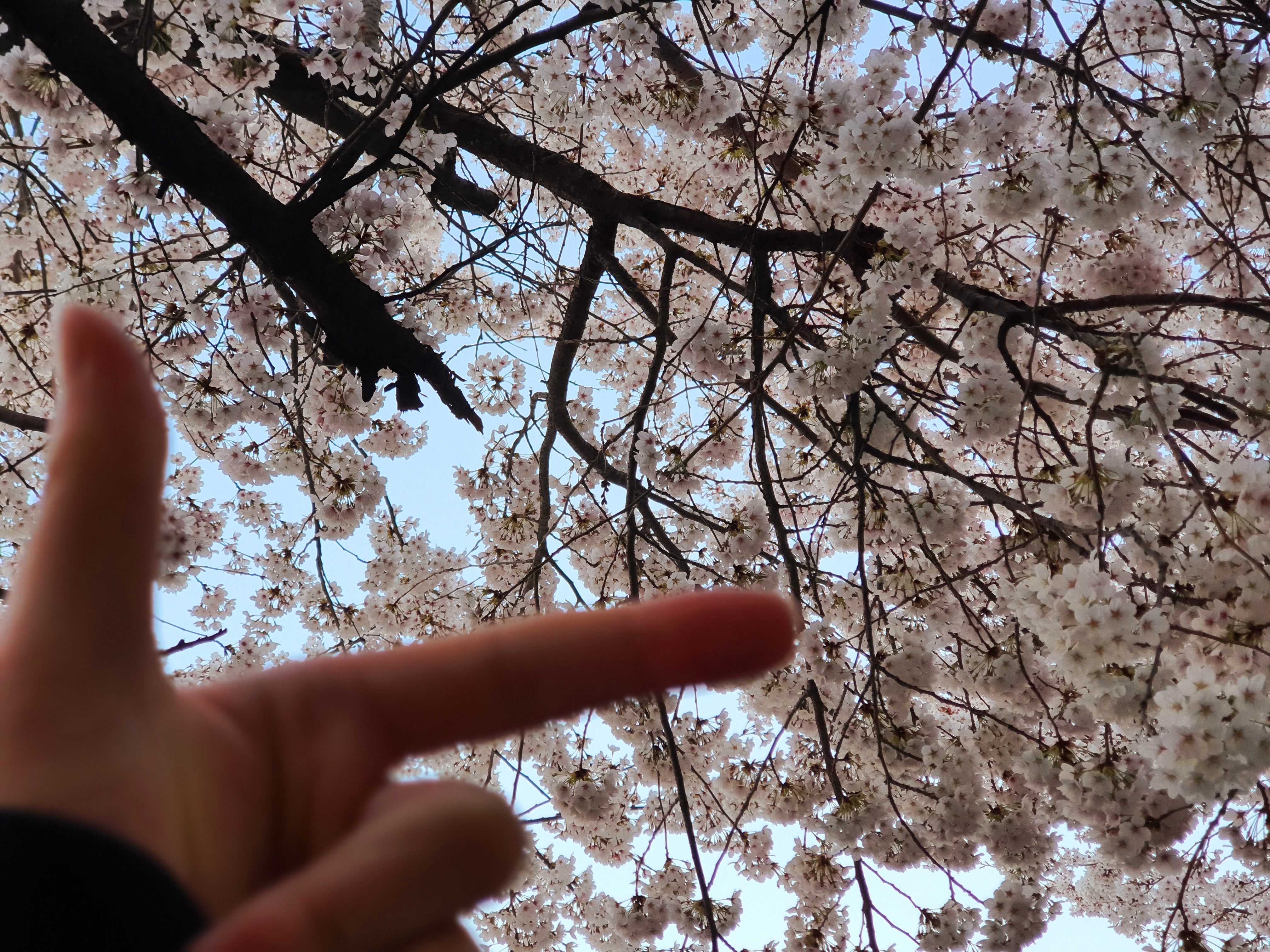 왜 V를 하면서 찍은줄 모르겠지만 제가 감성이 참 많은지라 무의식적으로 했나봅니다. 다른 벚꽃 나무에서도 찍어봤어요.