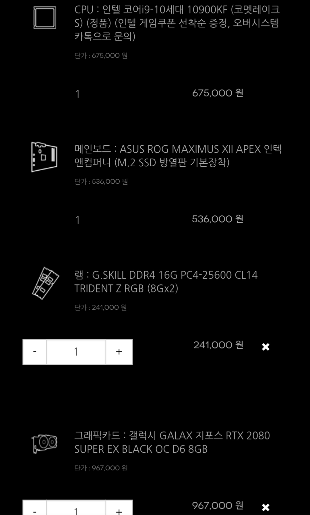 CPU : 인텔 i9 -10900KF