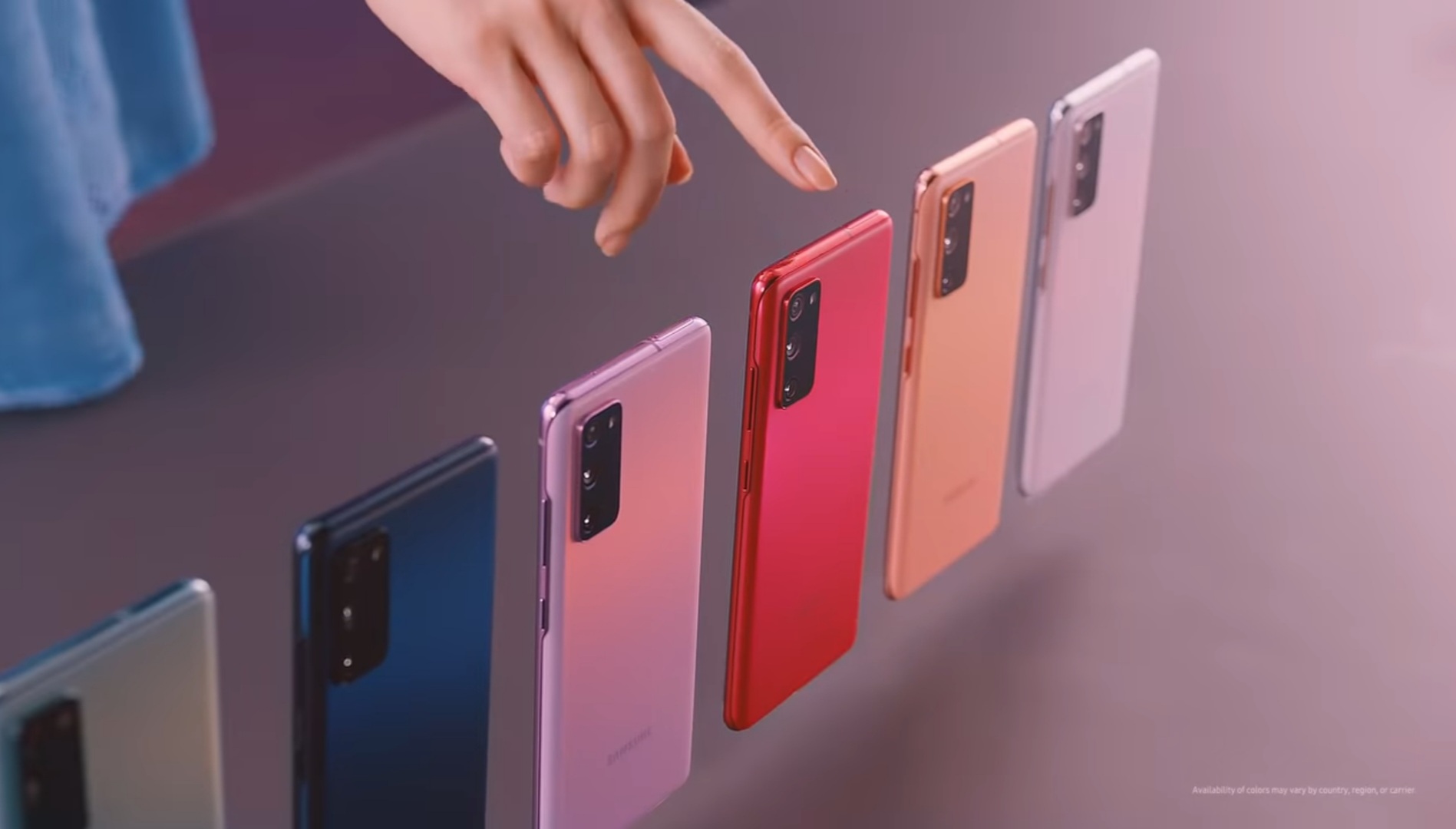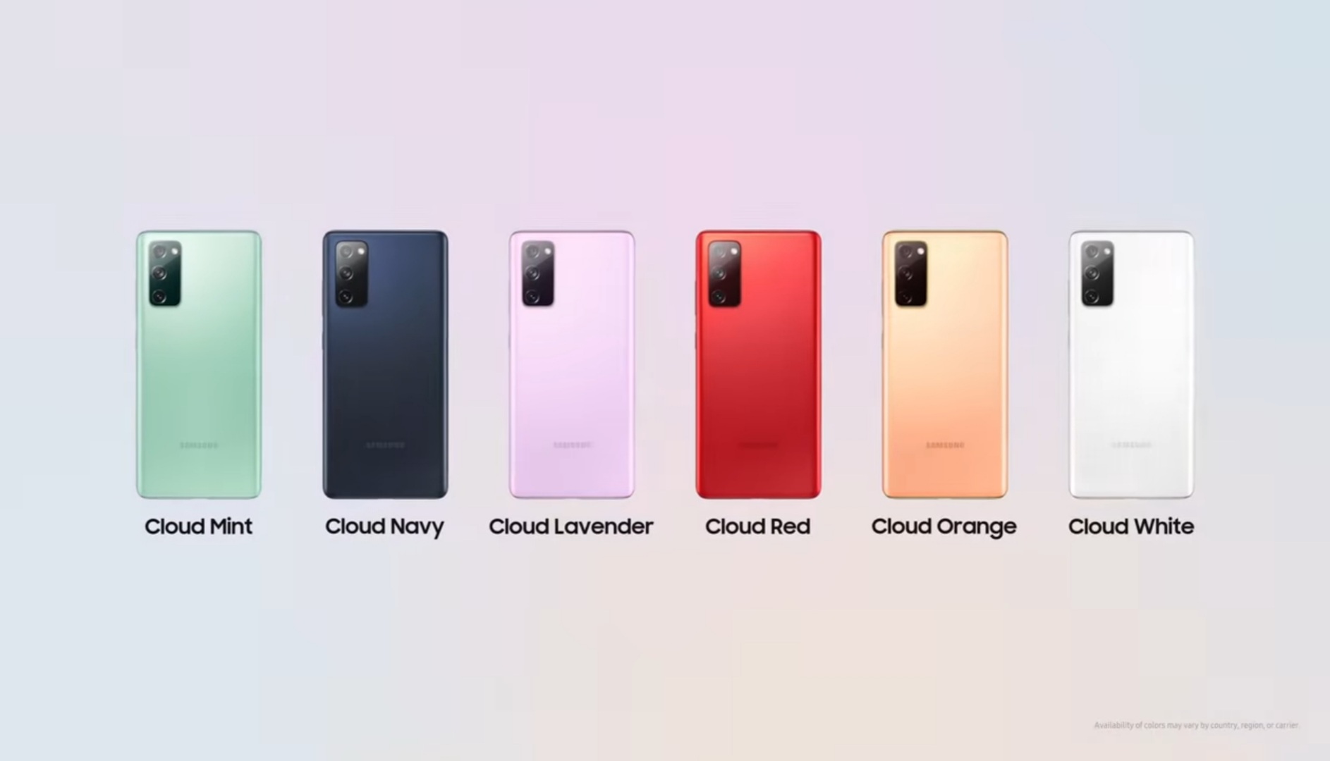 대신 중급기기와는 마감처리가 다르고 좀 더 단단한 플라스틱 소재를 사용하여 플라스틱을 사용했지만 디자인의 퀄리티는 죽지 않고 세련되게 보이게 제작의 난이도를 높혔습니다. 이번 갤럭시 S20 FE는 많은 색상이 공개가 되었고, 공개가 된 만큼 색상명칭 앞에 "클라우드"라는 새로운 명칭을 사용했습니다.