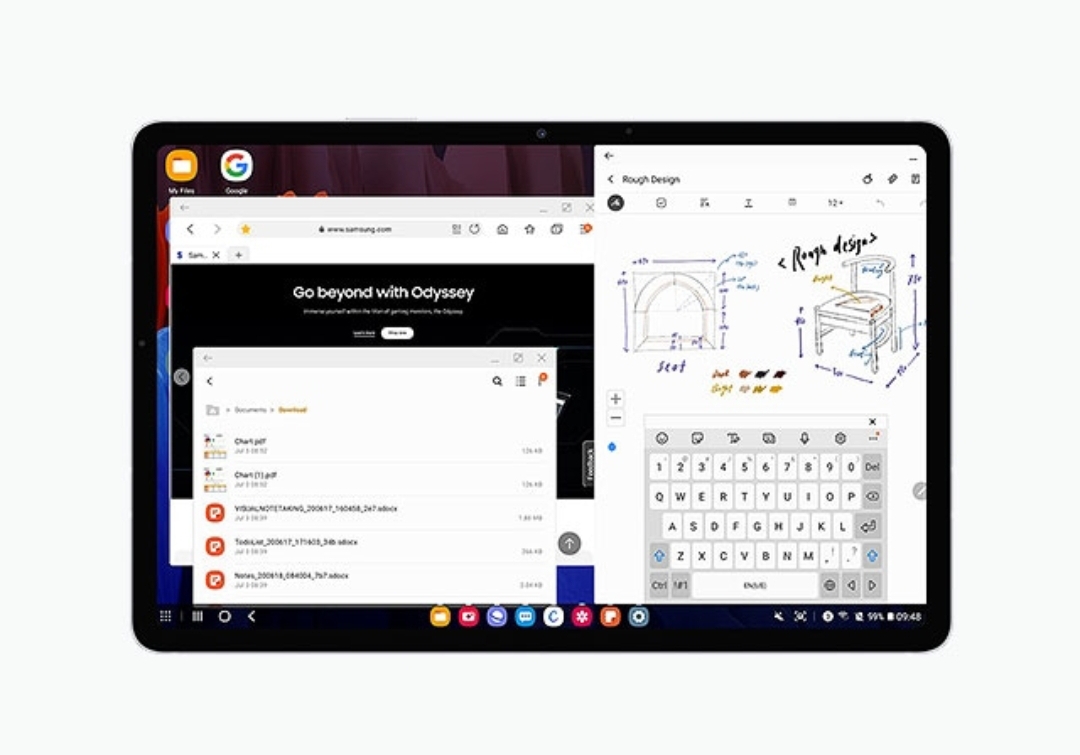 갤럭시 탭 S7 은 플러스 기준 12.4인치 아몰레드 16:10 비율과 아이패드 프로 4세대는 11인치 LCD 4.3:3 비율을 가지고 있습니다. 인치 크기와 상관없이 비율이 아이패드 보다 좋은 건 사실이기에 다양한 작업을 할때 시원하고 넓게 사용이 가능하며 멀티테스킹도 다방면으로 더 많이 활용할 수 있고 실행 할 수 있습니다.