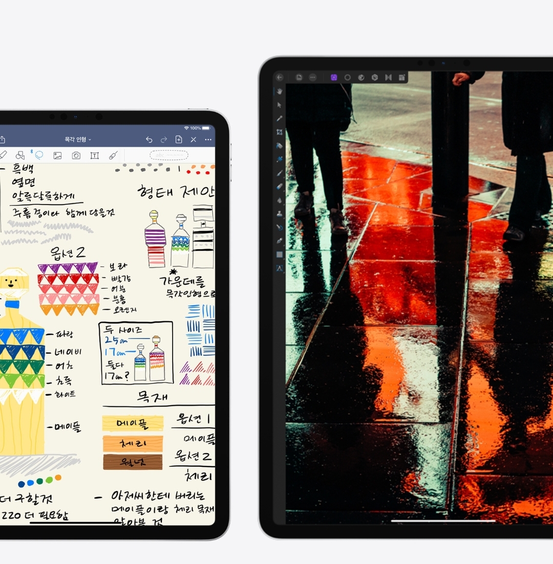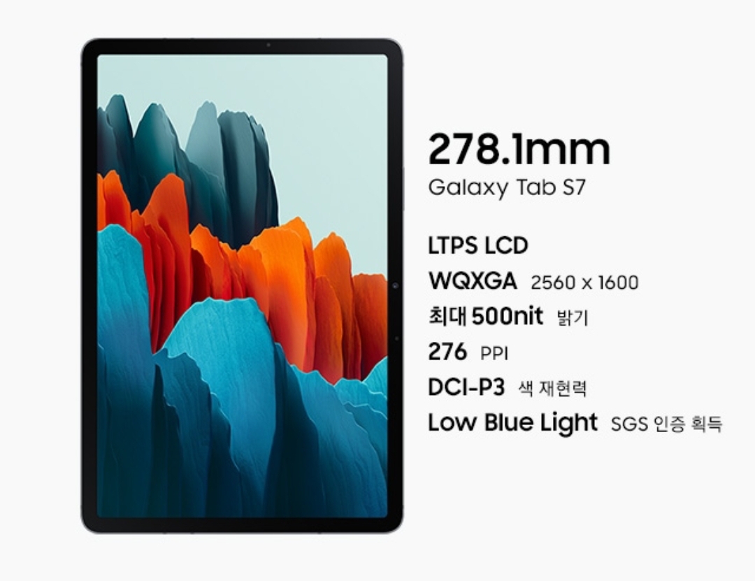 대신 아이패드는 120Hz 가변 주사율로 배터리 효율을 관리 할 수 있다는 장점이 있습니다. 그리고 아이패드를 사용하는 이유는 트루톤의 색감이 현실과 비슷한 색감으로 영상작업이나 전문성으로 그림을 그리는 분들에게는 정말 최고의 색감을 표현을 해주는 장점이 있습니다. 갤럭시 탭 S7은 옆으로 들었을 때 가로넓이가 넓어서 더 시원한 화면과 똑같이 120Hz 주사율을 사용하여 각자 서로의 다른 매력을 가지고 있습니다.