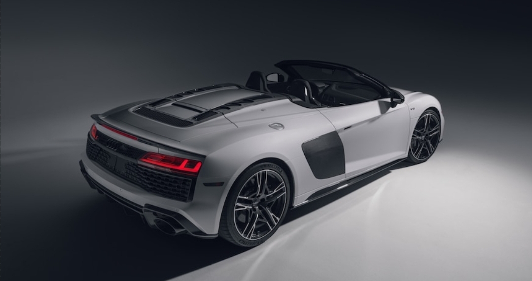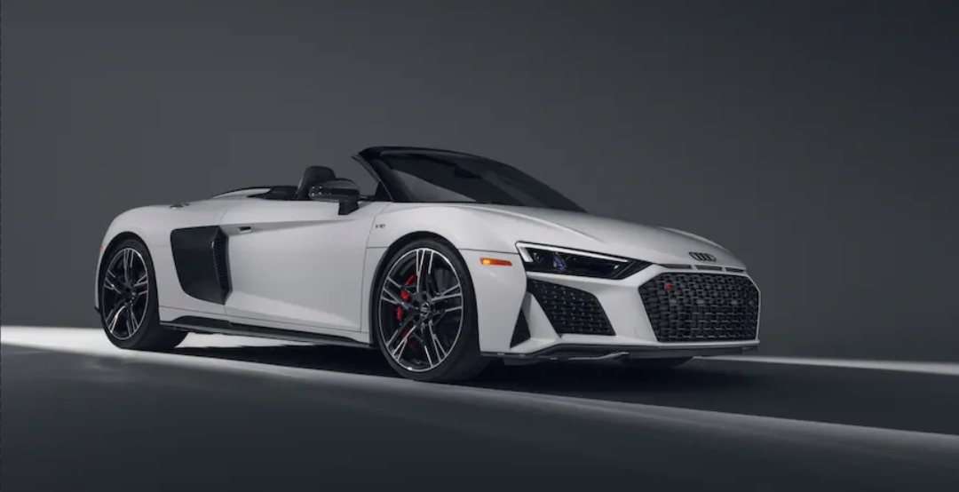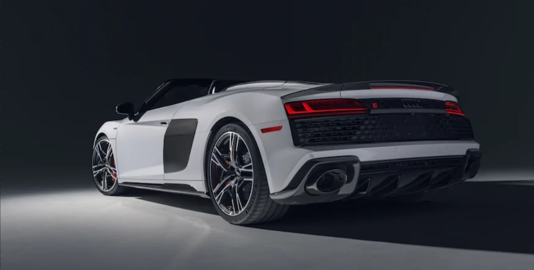 차량의 정확한 이름은 Audi R8 V10 Performance Spyder Quattro 이며 V10 이며 엔진은 파워 밴드 상단에서 최대출력을 내기 때문에 풀로틀의 가속은 엄청나게 빠르게 느껴질 것고 속도 또한 빠른속도를 낼 수 있는 힘을 가졌습니다. 아우디 R8은 8100rpm에서 602마력을 6700에서 443lb ft 토크를 냅니다. 공개 된 내용에서는 3.3초만에 0-60mph를 달릴 수 있고 최고속도는 204mph에 달하는 스펙을 가지고 있습니다.