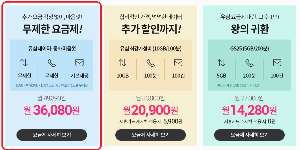 신간과 장소상관없이 알뜰 유심만 살 수 있는 GS편의점만 있으면 어디서든 통화만 하면 바로 개통할 수 있기 때문이죠. 그뿐만 아니라 자신이 무제한 데이터가 많으면 더 낮은 요금제를 사용도 할 수 있기 때문에 정말 좋은 혜택이죠.